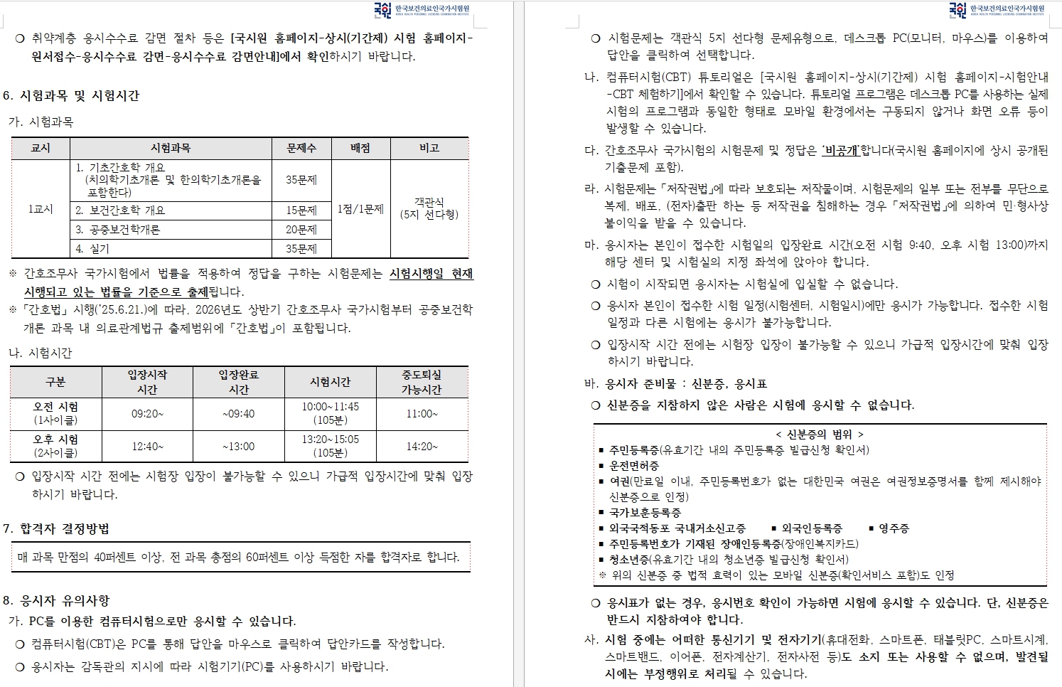 2026³âµµ °£È£Á¶¹«»ç ±¹°¡½ÃÇè ½ÃÇà°èȹÀ»